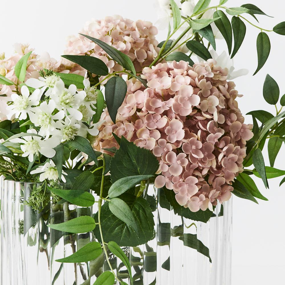 Hydrangea Delphinium Mix in Vase Dusty Pink White 50cmw x 45cmh