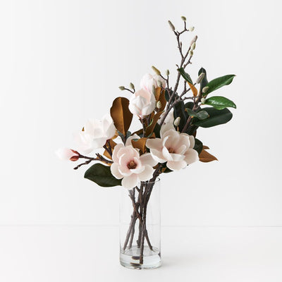 Experience the grandeur of nature with our Magnolia Japanese Mix in a large glass vase. This striking light pink arrangement boasts an exquisite blend of magnolia blooms, evoking a sense of tranquillity and sophistication. Elevate your space with this magnificent floral masterpiece.