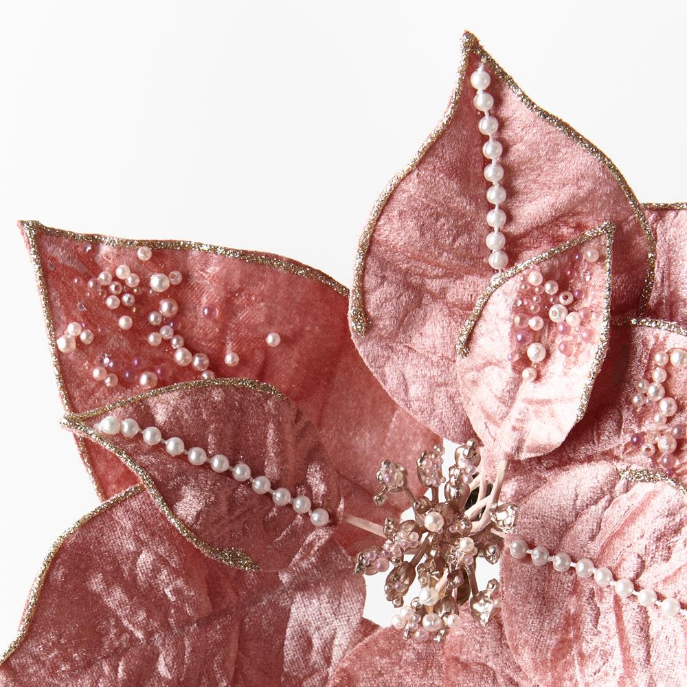 Meet our Christmas Velvet Poinsettia Clip, a festive beauty with effortless charm. Crafted from plush velvet with pearl bead details, this exquisite flower features a convenient clip for easy attachment to trees and decor, bringing a touch of holiday elegance to your festive ensemble.