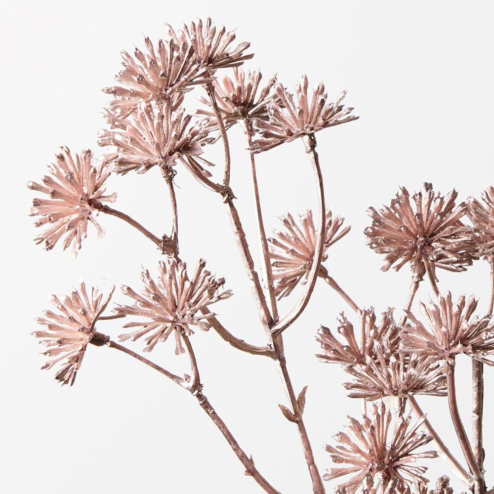 Elevate your space with our exquisite metallic rose gold artificial Banksia stem. Crafted with precision, its lustrous hues add a touch of glamour, combining the timeless beauty of nature with modern elegance.