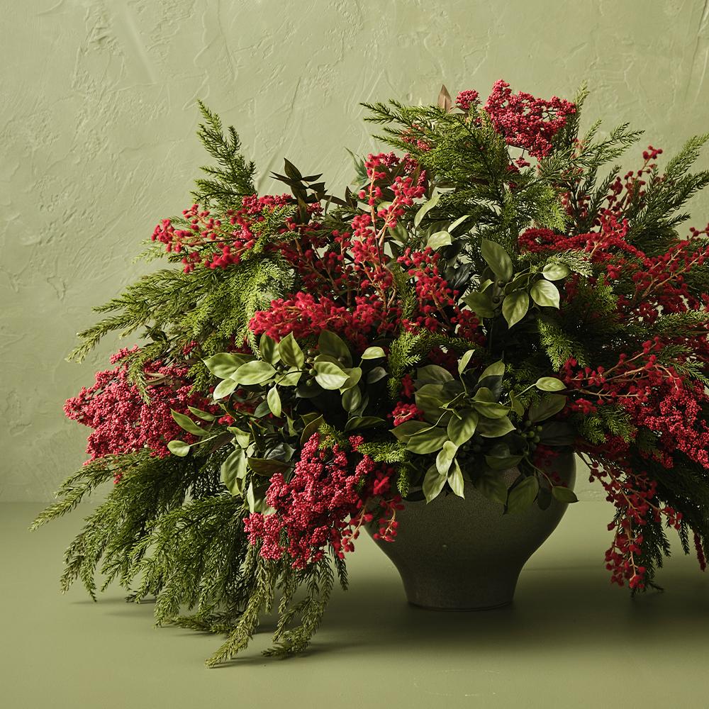 Elevate your holiday decor with our Lush Green Cypress Spray. This artificial botanical masterpiece captures the essence of nature, with its vibrant green foliage adding a touch of freshness and elegance to your festive celebrations.