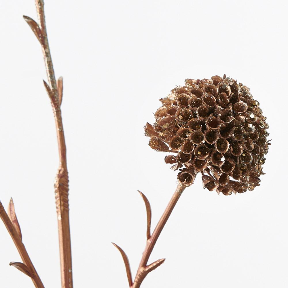 Elevate your space with our exquisite metallic rose gold artificial Banksia stem. Crafted with precision, its lustrous hues add a touch of glamour, combining the timeless beauty of nature with modern elegance.