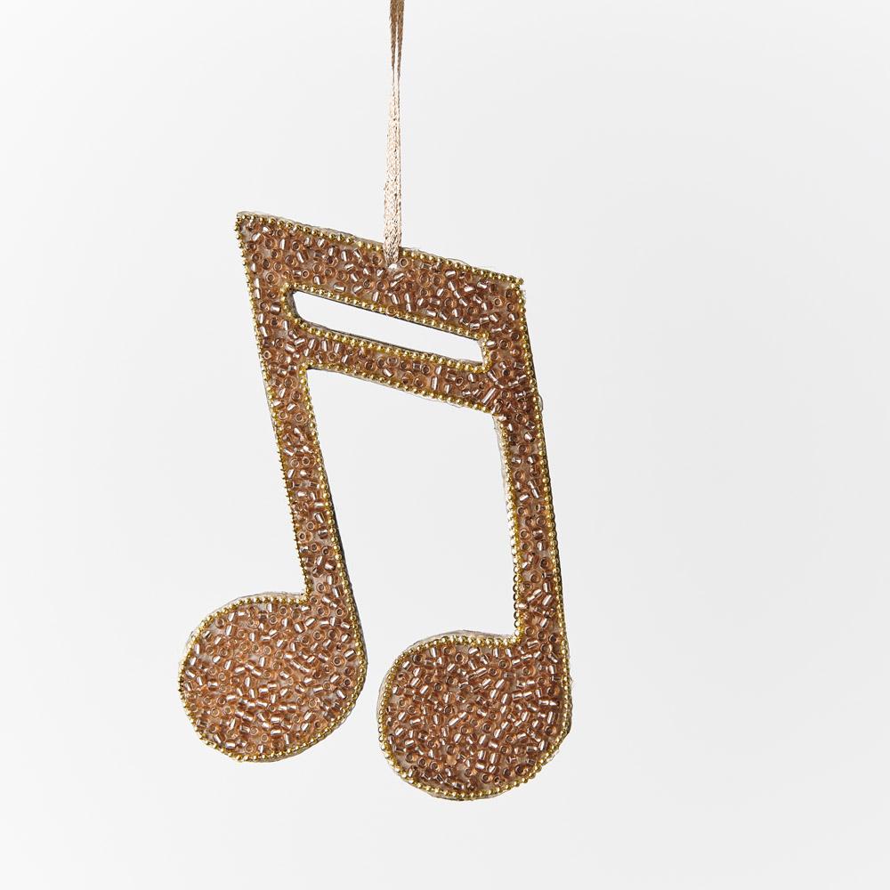 Harmonize your holiday decor with our Rose Gold Beaded Music Note Ornament. This intricate design, featuring a delicate music note outline adorned with shimmering beads, strikes a chord of elegance and festive cheer. Elevate your celebrations with this enchanting and melodious addition.