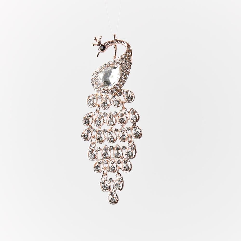 Introducing our Christmas Peacock Ornament, a regal masterpiece adorned with shimmering crystals. This elegant avian charm captures the spirit of the season, combining the grace of a peacock with the sparkle of crystals, making it a captivating addition to your festive adornments.