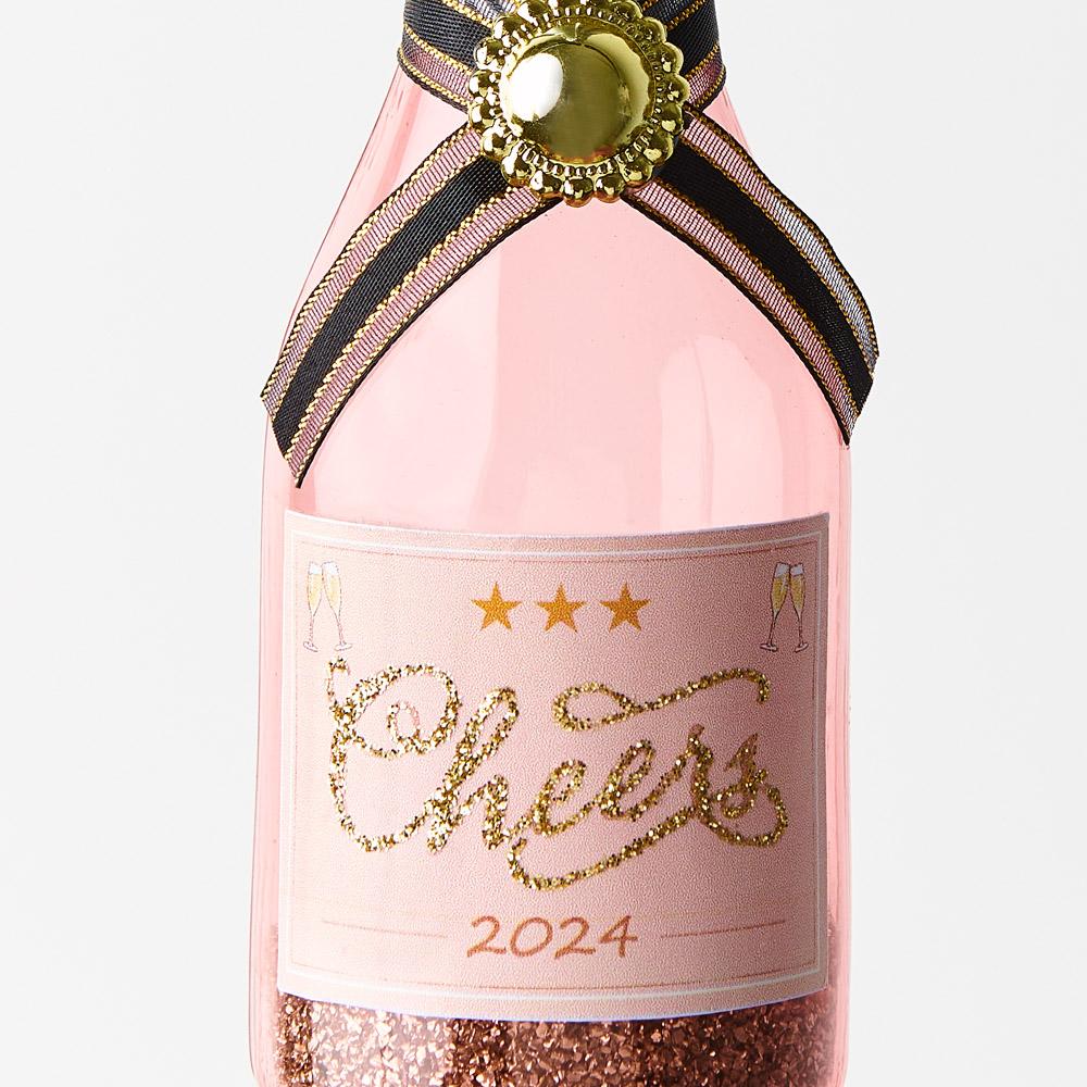 Celebrate the season with our Pink Champagne Bottle Ornament, a festive delight that adds effervescent charm to your holiday decor. Adorned with glitter inside, this sparkling ornament brings a touch of merriment and elegance to your festive celebrations. Cheers to a dazzling Christmas!