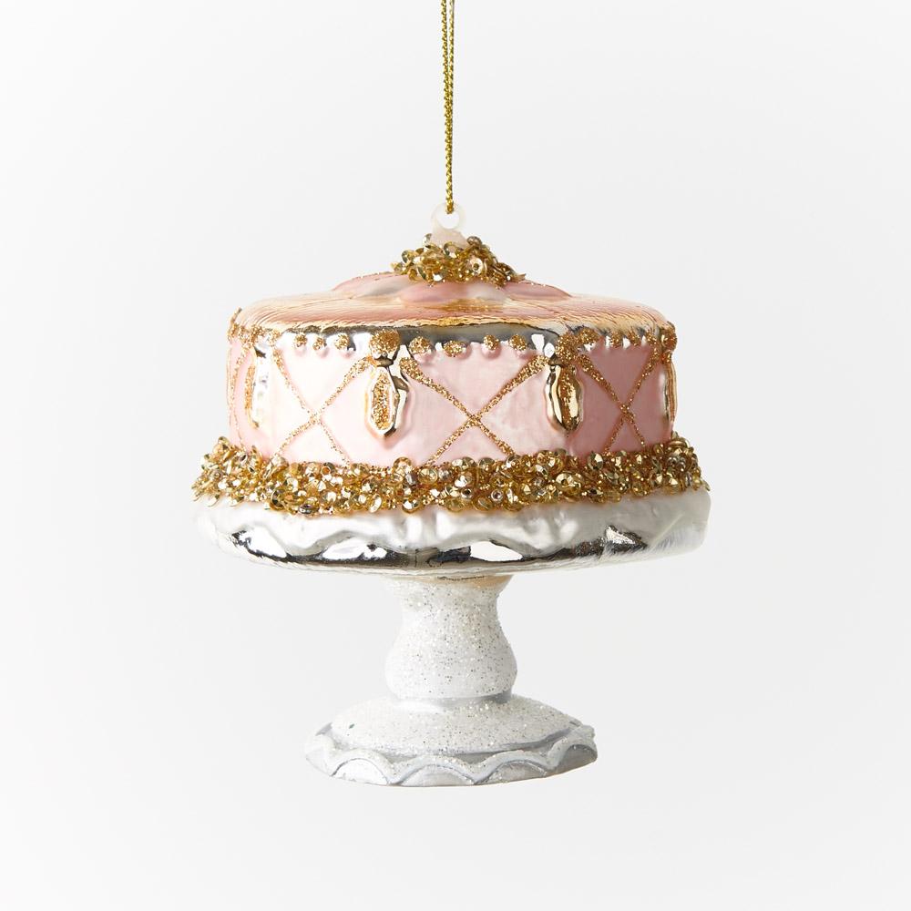 Delight in the sweetness of the season with our Pink and Gold Cake Christmas Ornament. This delectable creation, adorned with charming pink and gold details, adds a touch of confectionery charm to your festive decorations. A scrumptious addition to your holiday festivities.