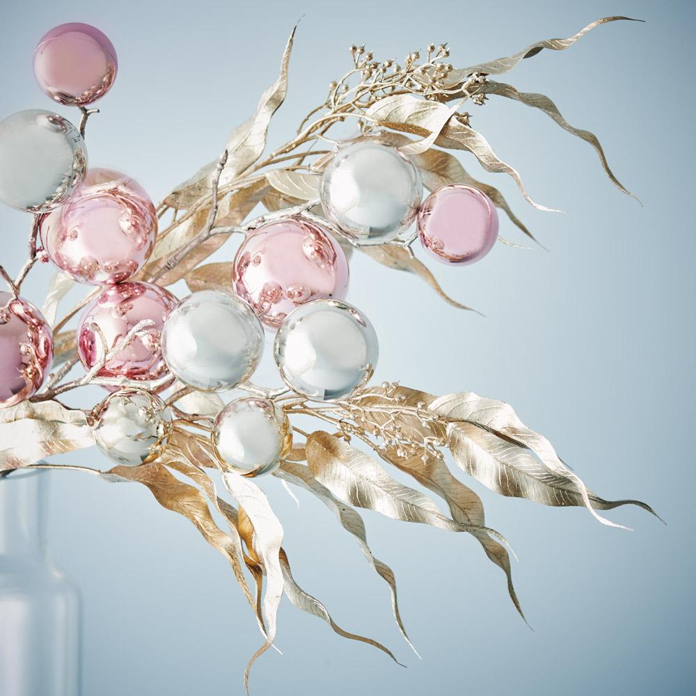Introducing our Christmas Cluster of Pink Metallic Balls on a Stem—a versatile and elegant decoration for festive flair. Ideal for styling in groups or adorning your tree, the metallic spheres bring a touch of sophistication, creating a dazzling holiday display.