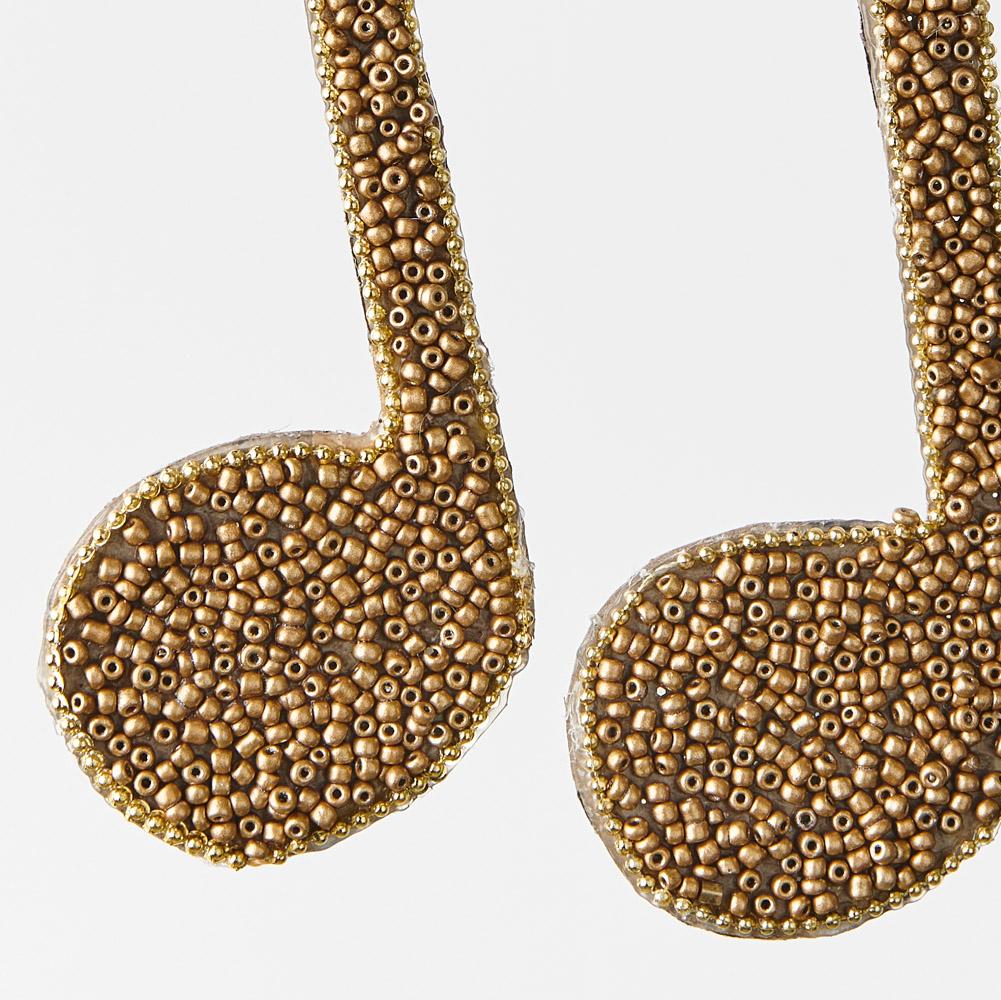 Harmonize your holiday decor with our Gold Beaded Music Note Ornament. This intricate design, featuring a delicate music note outline adorned with shimmering beads, strikes a chord of elegance and festive cheer. Elevate your celebrations with this enchanting and melodious addition.