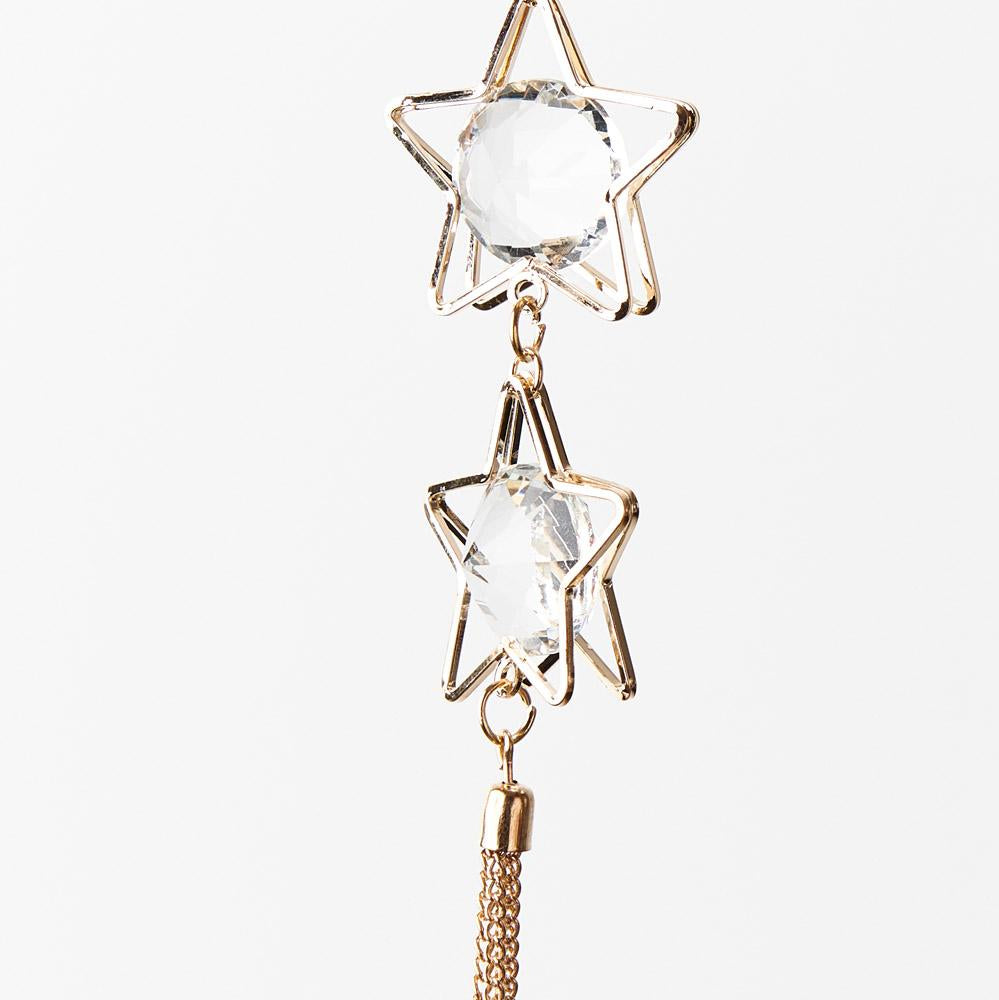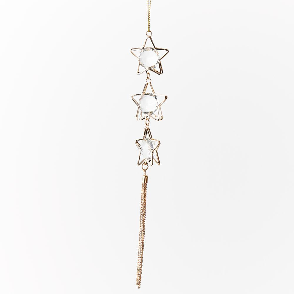 Unveil the celestial charm of our Christmas Triple Star Ornament Set. Three stars, each adorned with a central crystal, create a radiant display that captures the magic of the season. Elevate your holiday decor with this sparkling trio.