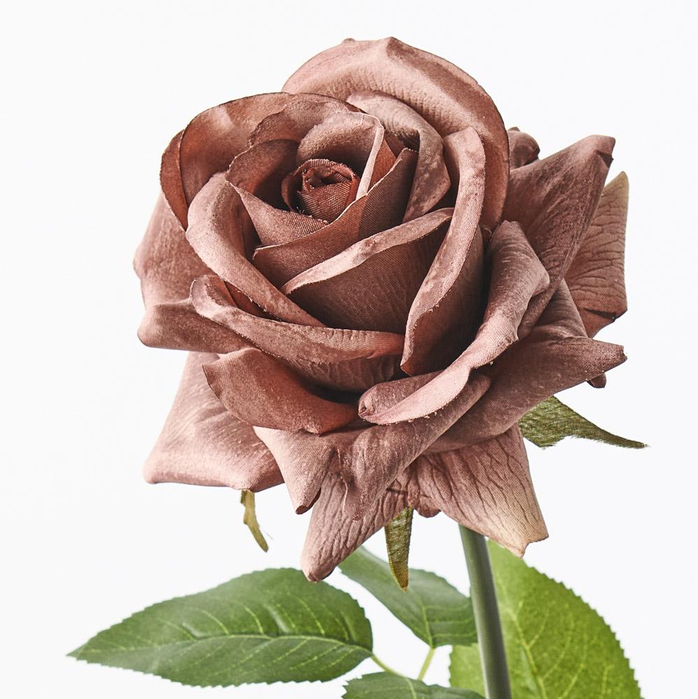 Bring colour into your space with Australia's most realistic artificial flowers. Easily maintained this gorgeous artificial Rose Hannah flower stem will bring lasting beauty into your home. Create a one of a kind arrangement mixing with other stems or place in a decorative vase on its own. Made from the finest of materials this faux Rose Hannah in chocolate brown frost looks amazingly real. For longer lasting faux flower stems, keep out of direct sunlight.