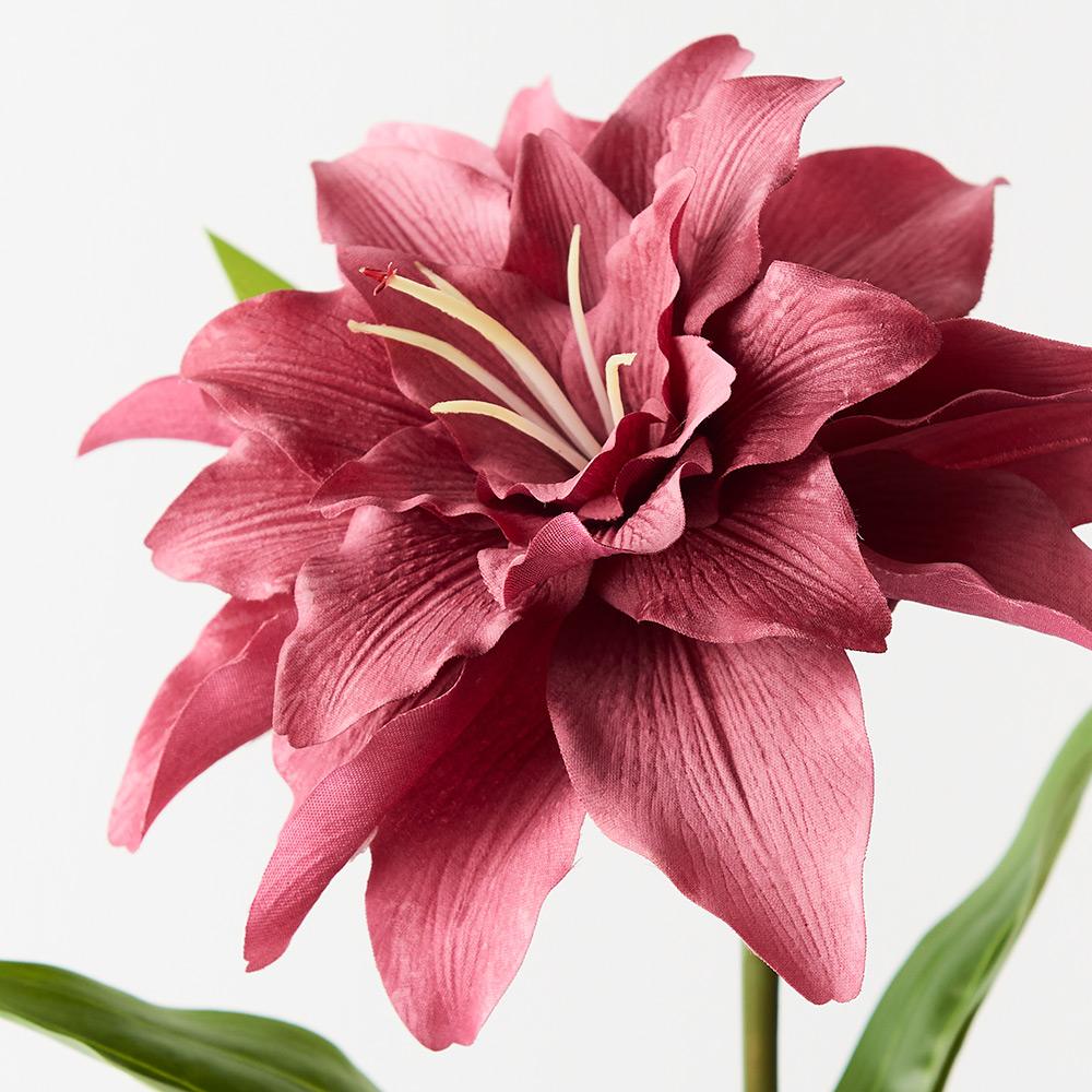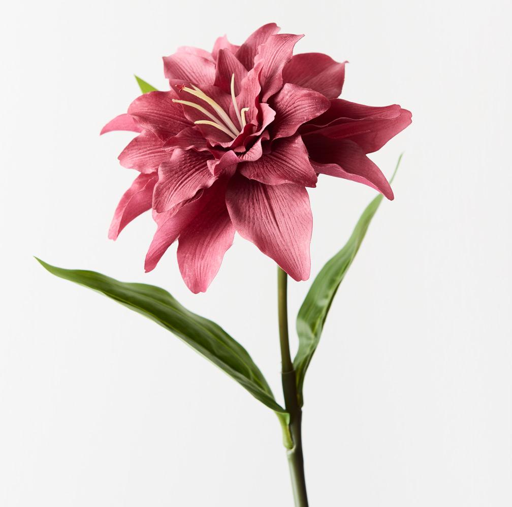 Brighten up your interior space with this striking faux roselily in burgundy, unbelievably realistic with their fresh touch you wouldn’t even think they’re faux! Style this artificial roselily simply in a beautiful bunch on their own or create an arrangement from Floral Interiors huge variety of artificial flowers for impact. With minimal maintenance this faux stem can offer lasting beauty, keep out of direct sunlight.