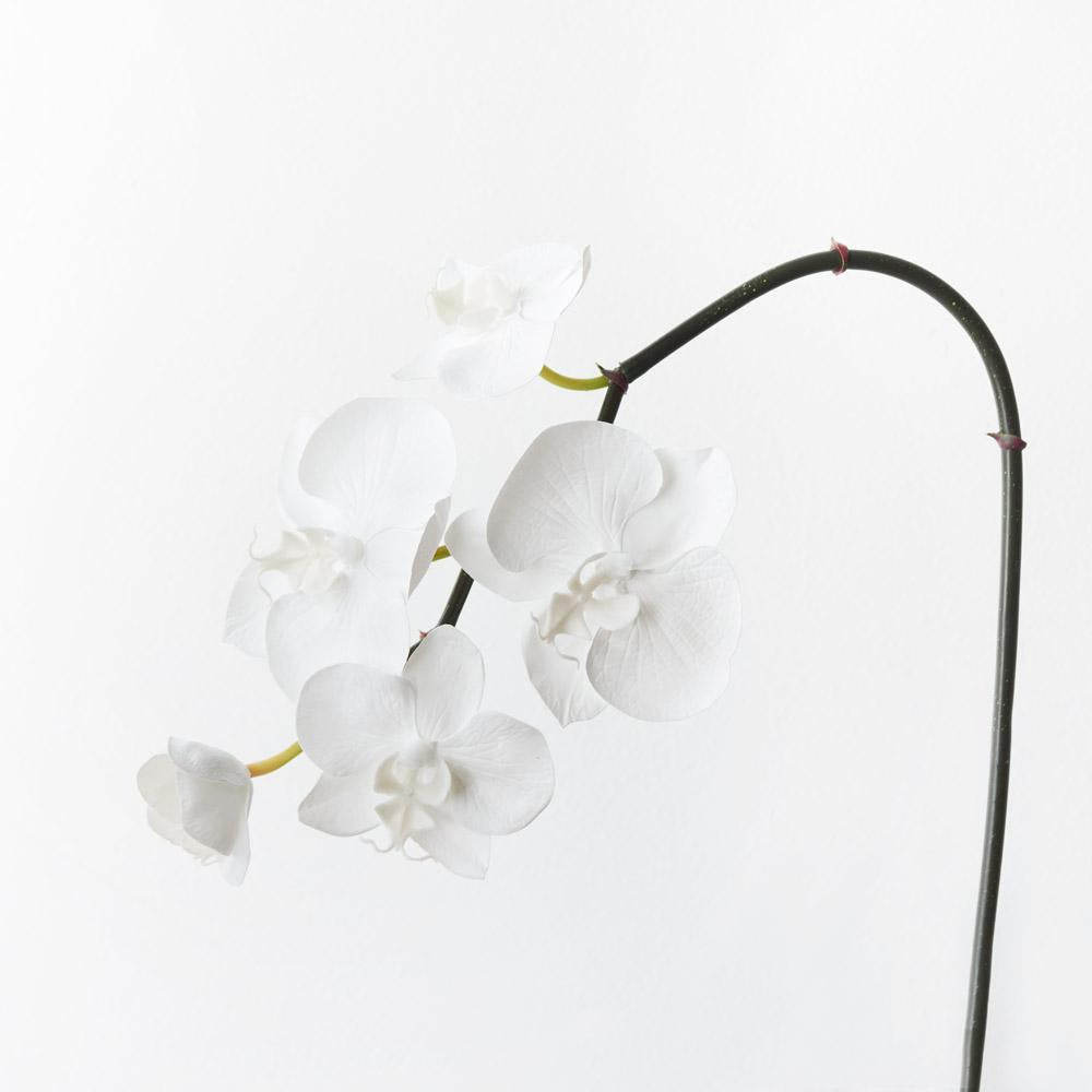 Brighten up your interior space with this striking faux orchid phalaenopsis spray, unbelievably realistic with their fresh touch you wouldn’t even think they’re faux! Style this artificial orchid phalaenopsis easily in a gorgeous bunch on their own or create an arrangement from Floral Interiors huge variety of artificial flowers for impact. With minimal maintenance this faux stem can offer lasting beauty, keep out of direct sunlight..