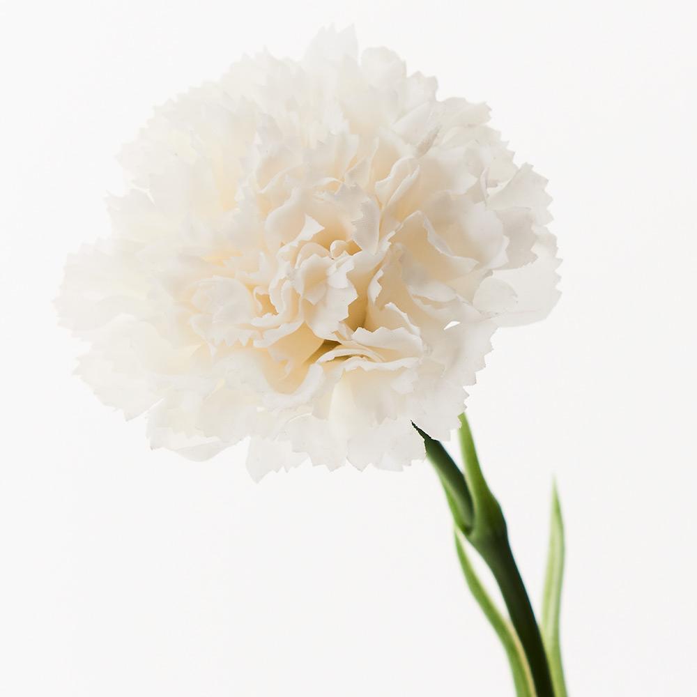 Bring warmth and vibrancy to your interior space with this gorgeous faux carnation in winter white. Create a one of a kind artificial arrangement mixing with other stems or place in a decorative vase on its own. Being artificial, this carnation will offer lasting beauty with minimal maintenance, keep out of direct sunlight.