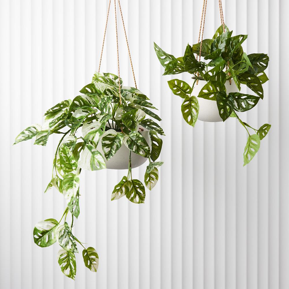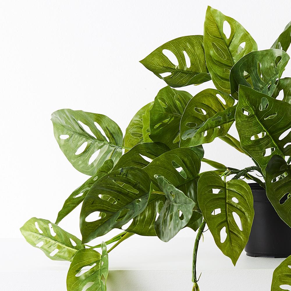 Bring nature into your space all year round with Floral Interiors artificial plants. This monstera adansonii plant comes premade in a plastic pot, ready to be placed in a stylish pot of your choice. (Not suitable for outdoor use). Select from our range of complimenting pots in varying styles, colours and designs to suit any decor.