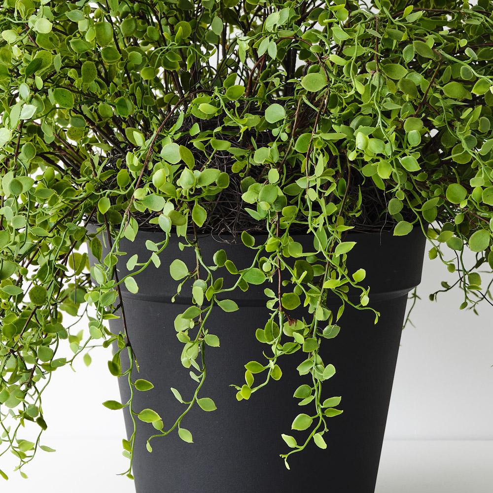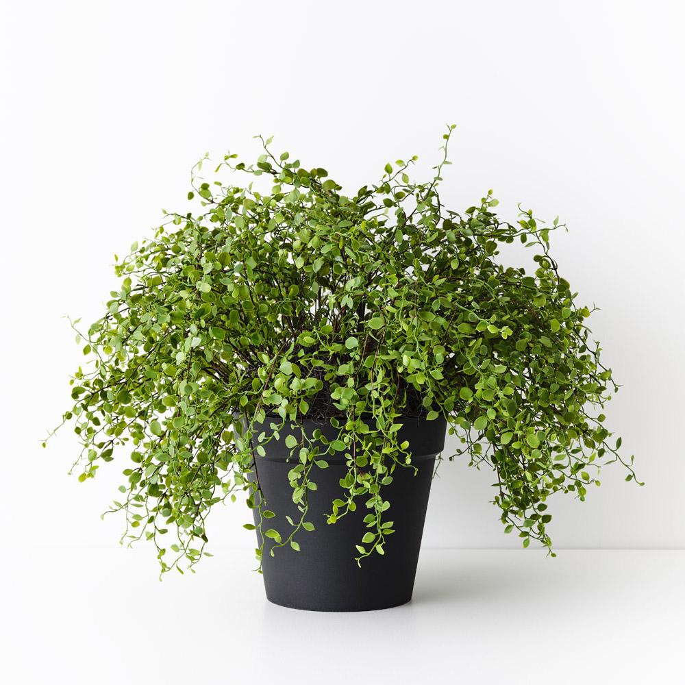 Introducing the Maidenhair Vine Plant, nestled in a small black pot. This delicate botanical feature airy, fine-textured foliage that cascades elegantly, making it an enchanting addition to any space. Ideal for medium sized pots and spaces or as a stylish accent on shelves and tables, the Maidenhair Vine Plant adds a touch of natural beauty and sophistication to your indoor decor.