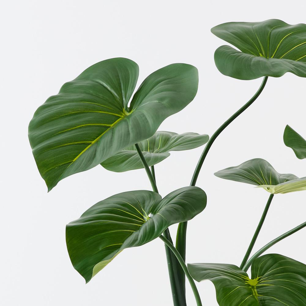 A lush, tropical plant with large, heart-shaped leaves that bring bold texture and a vibrant green presence to any space. Fully finished and ready to display, it requires no maintenance, making it an easy, stylish way to add a touch of tropical elegance to your home or office.