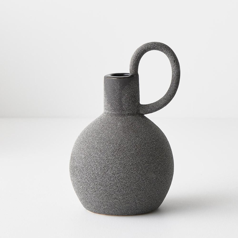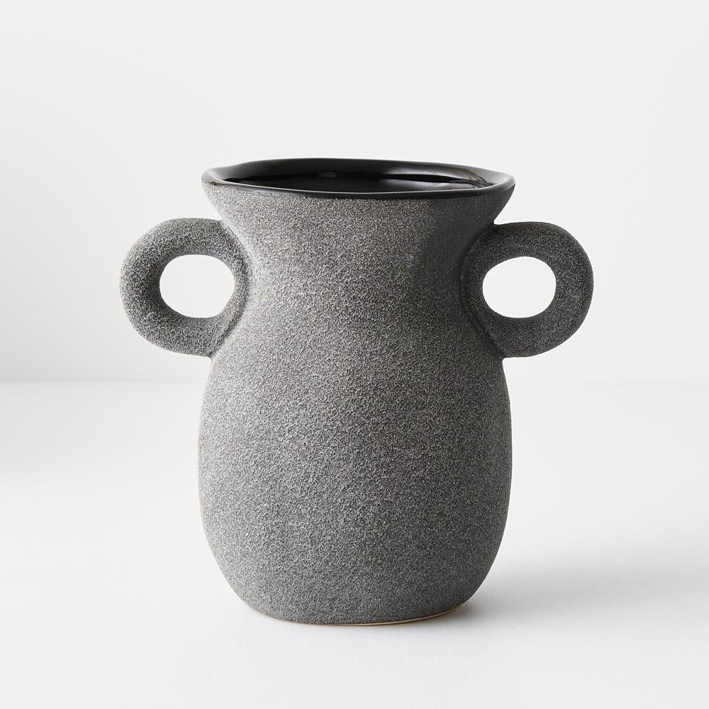 Vase Pilu w/handle Black 12.5cmh x 9cmd
