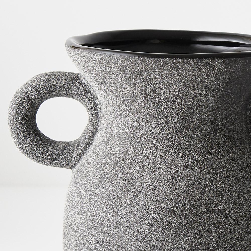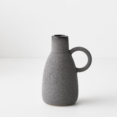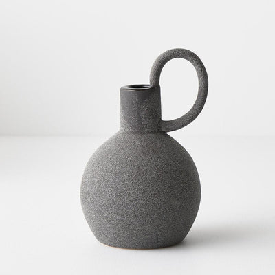 The Pilu Vase with handle showcases a charming, speckled finish, adding rustic elegance to its design. With its graceful handle and textured surface, it exudes a quaint charm, perfect for displaying stems or as a standalone decorative accent, infusing spaces with timeless appeal.