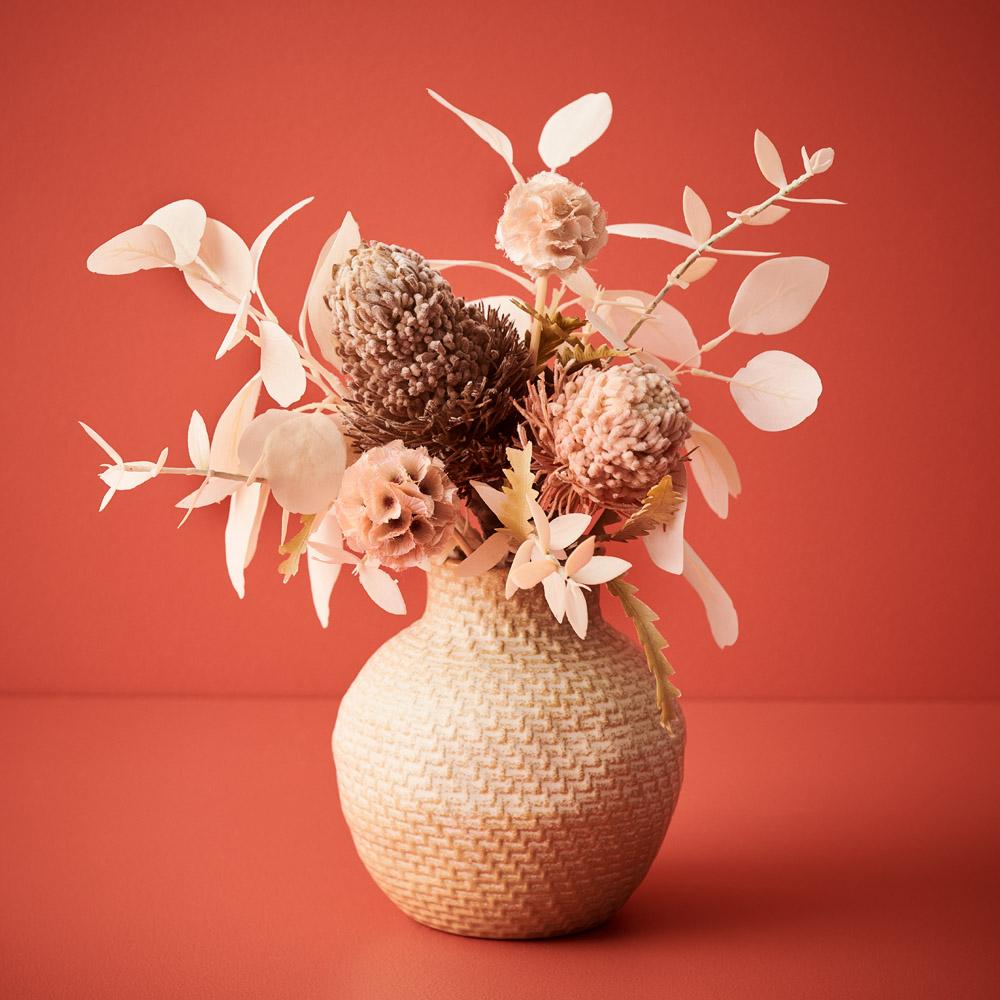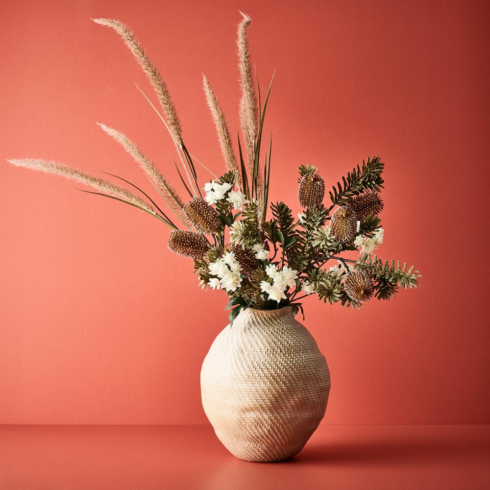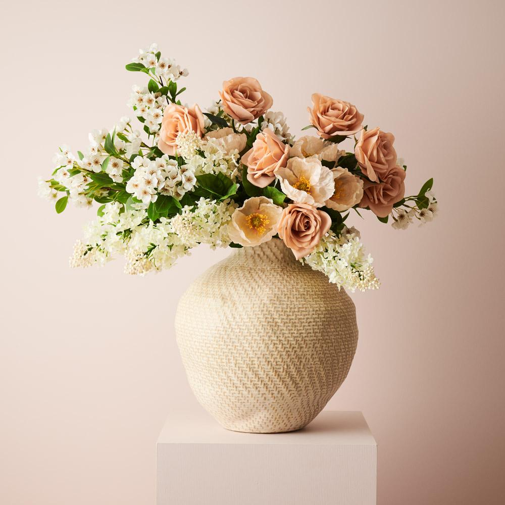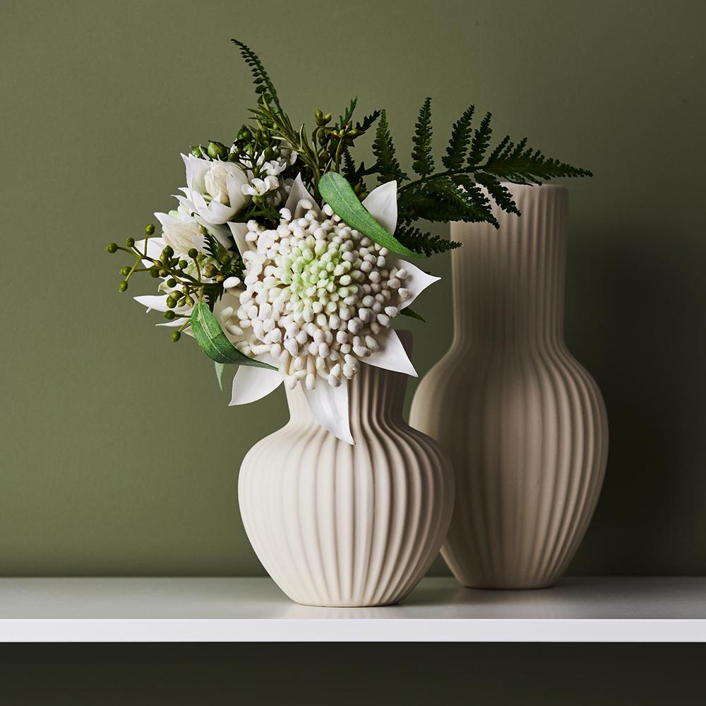 Our Palina Vase in Ivory has a satin matte coating with a soft velvet feel and a high gloss white glaze inside. It’s not only eye-catching on its own, but pairs perfectly with our extensive range of artificial stems or branches to create vibrance in any home or office. This ceramic vase is handmade, due to the nature of handmade items there may be slight variations in the size, surface texture, glaze consistency, colour or tone of the vase.