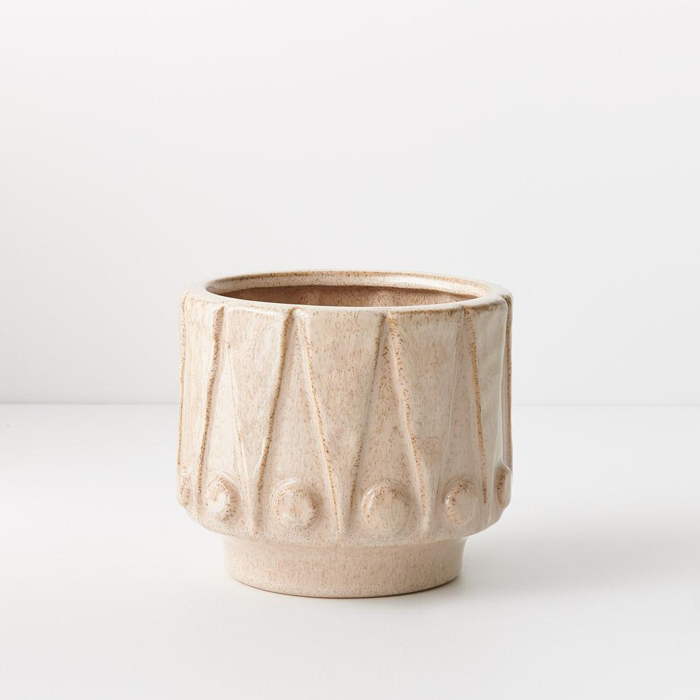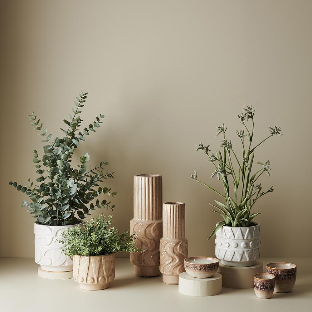 Our Palina Pot in Ivory has a satin matte coating with a soft velvet feel and a high gloss white glaze inside. It’s not only eye-catching on its own, but pairs perfectly with our extensive range of artificial plants and greenery to create vibrance in any home or office. This ceramic pot is handmade, due to the nature of handmade items there may be slight variations in the size, surface texture, glaze consistency, colour or tone of the pots. This pot is suitable for indoor use and does not have a drainage hole.
