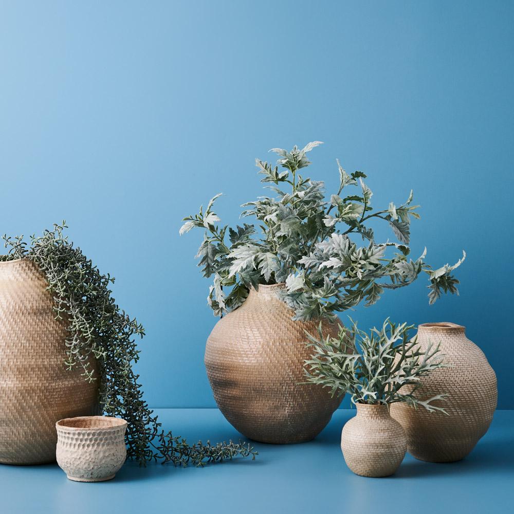 Our metal Baha pot sets featuring a rattan look are the perfect vessels to style your plants in any space. Style as a cluster with various plants, or individually in different areas. Due to the nature of handmade items there may be slight variations in the size, surface texture or colour.