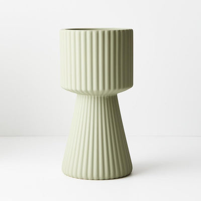 Our pot pleat cylinder tall (set of 2) in sage are the perfect modern vessel to style your plants in any space. These pots are handmade from polystone, due to the nature of handmade items there may be slight variations in the size, surface texture or colour. Suitable for indoor or outdoor use they all come with a drainage hole.
