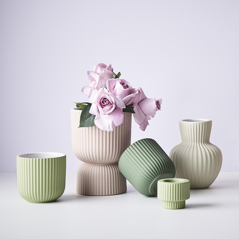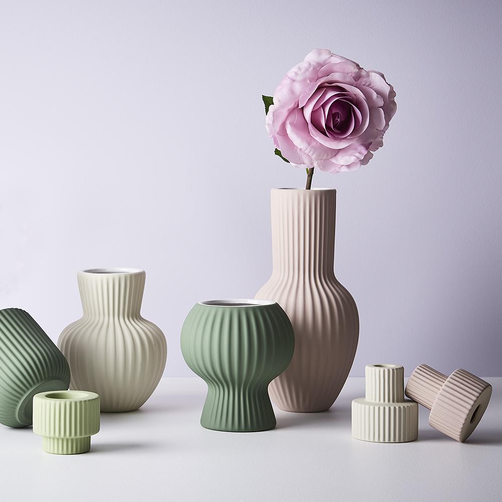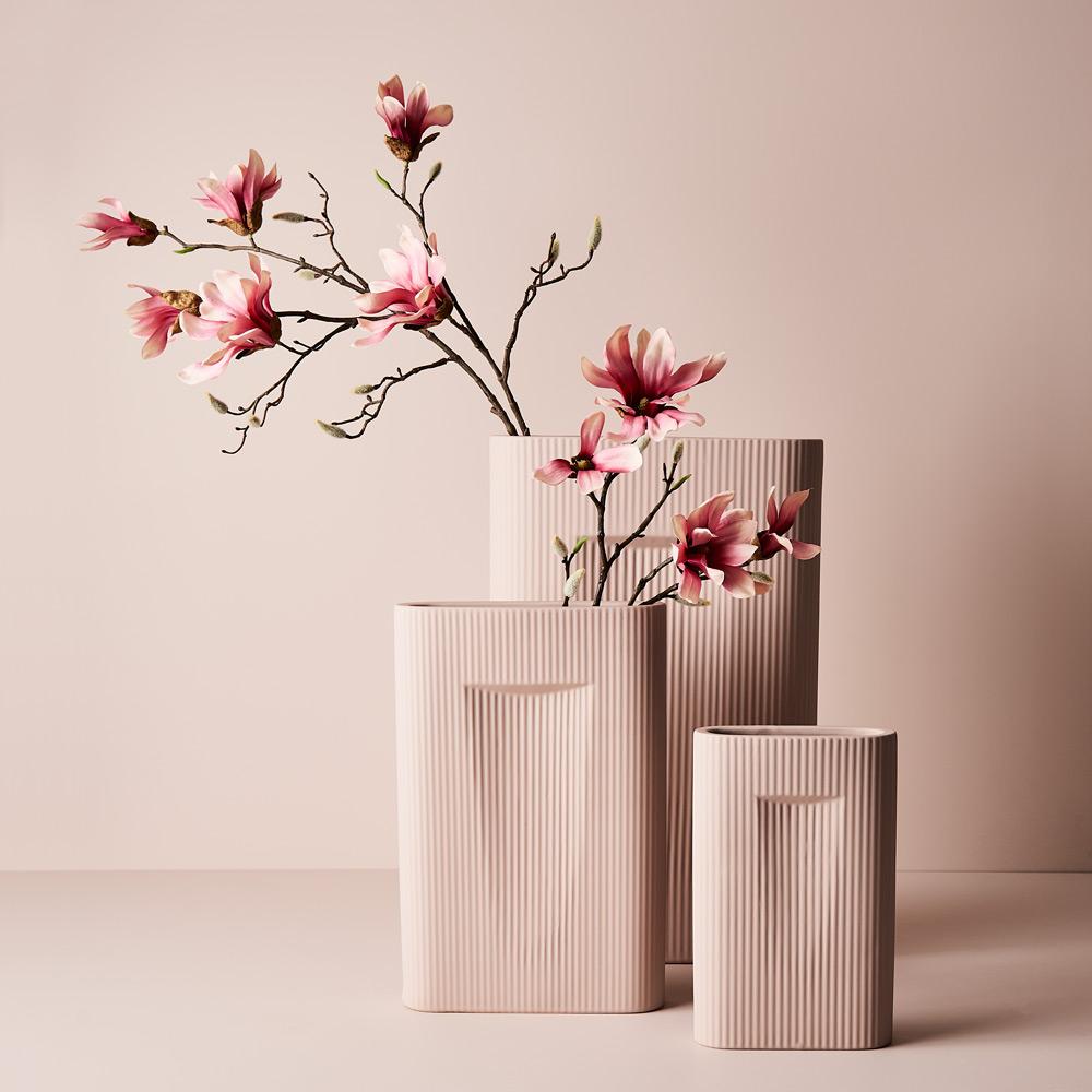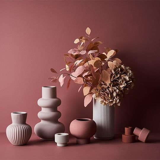Our ceramic Lucena Vase featuring a Light Pink satin matte coating with a soft velvet feel is the perfect vessel to style your artificial stems in any space. Select from our extensive range of artificial stems to compliment. This ceramic vase is handmade, due to the nature of handmade items there may be slight variations in the size, surface texture, coating consistency, colour or tone of the vase.