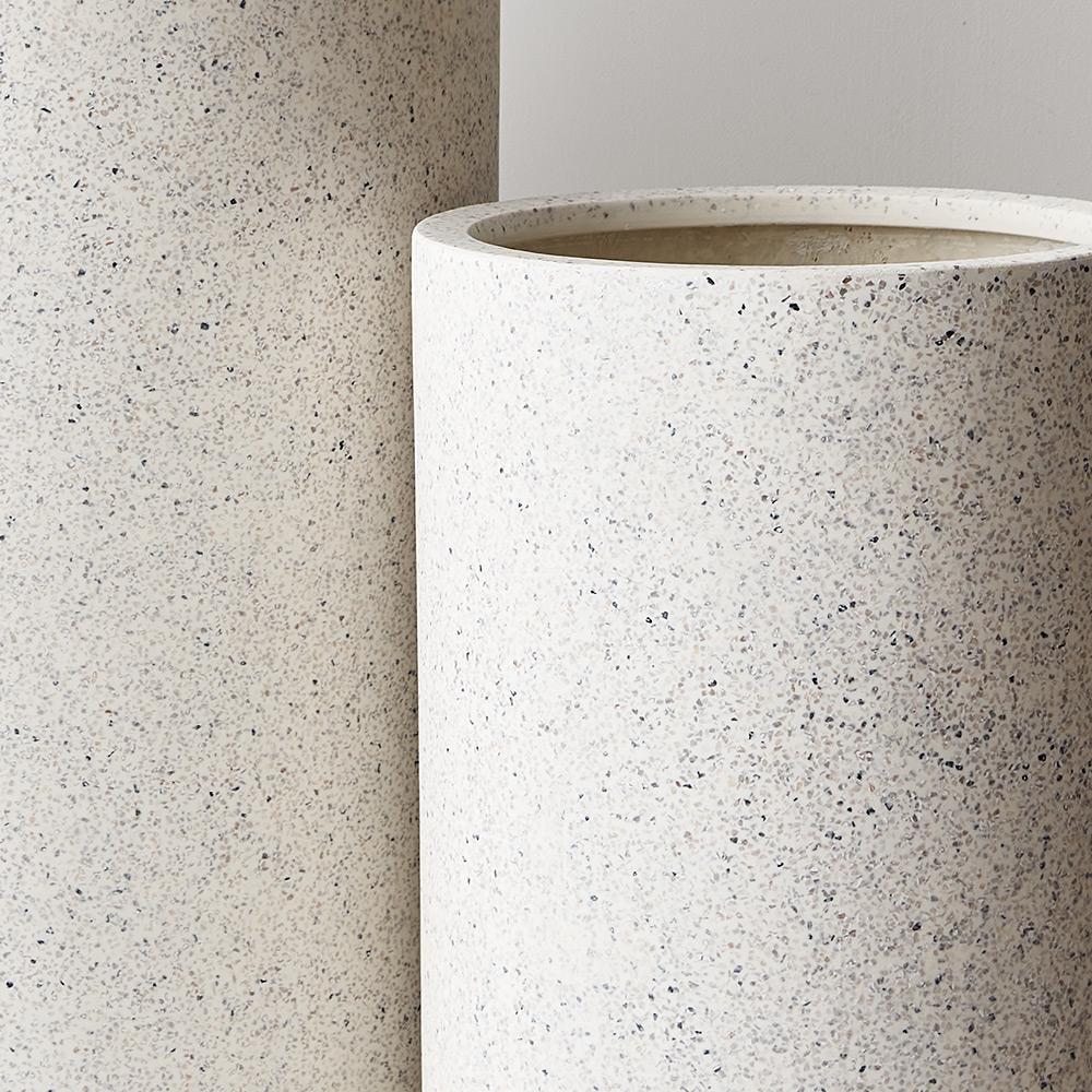 Our Cenzo pots in white are the perfect modern vessel to style your plants in any space. These pots are handmade from Poly Terrazzo. Due to the nature of