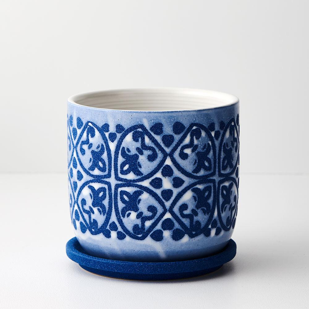 Pot Etiana w/saucer Blue White 14.5cmh x 15cmd