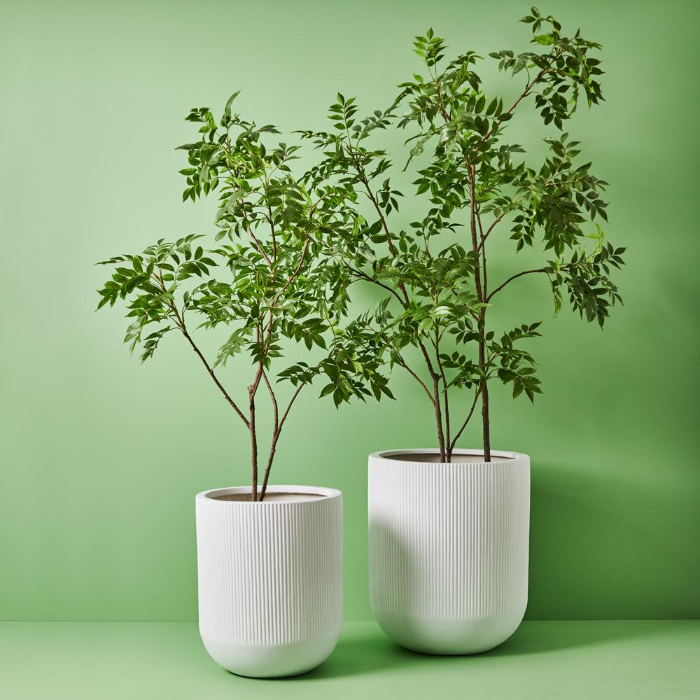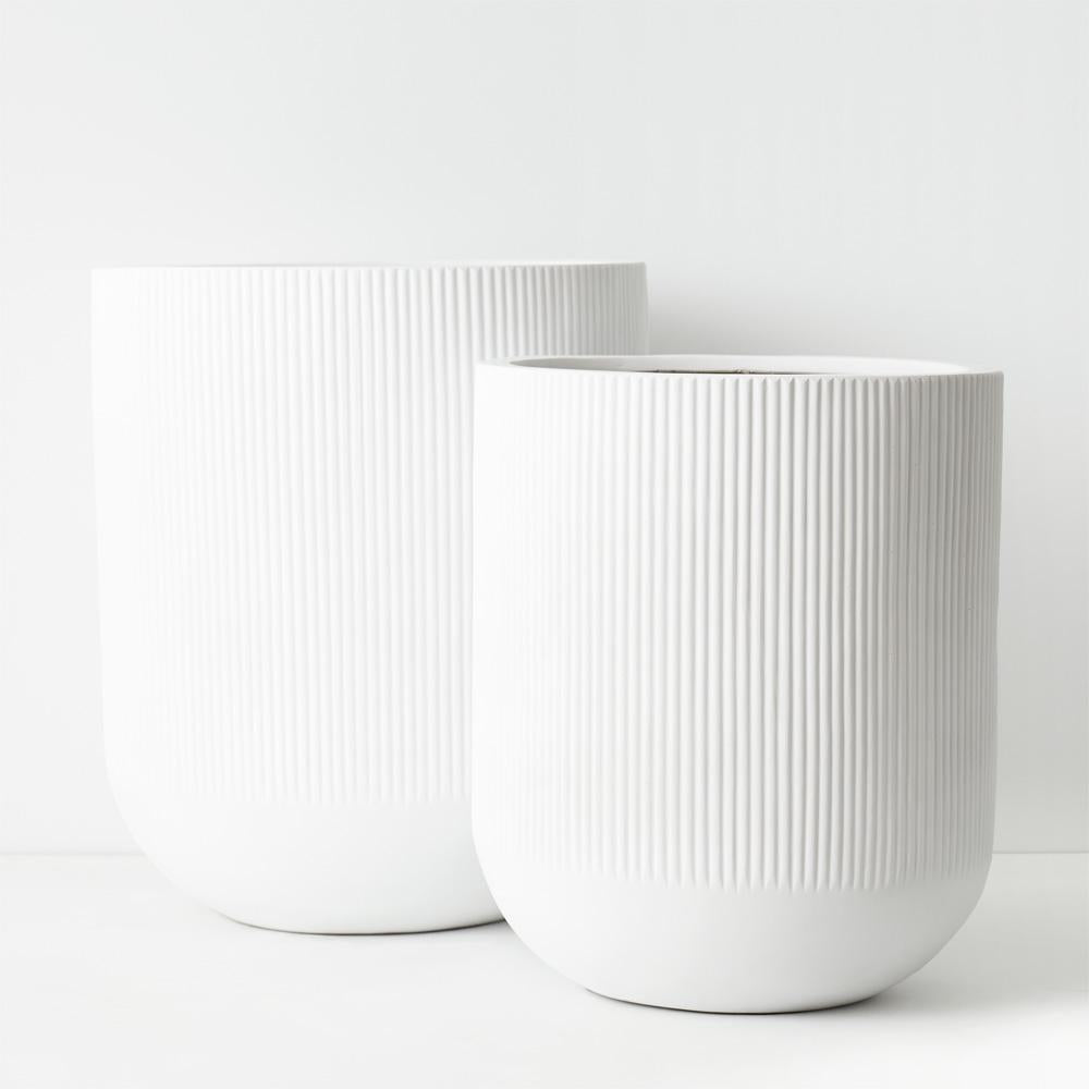 Our pot linear (set of 2) in white are the perfect modern vessel to style your plants in any space. this pot is handmade from polystone, due to the nature of handmade items there may be slight variations in the size, surface texture or colour. Suitable for indoor or outdoor use they all come with a drainage hole and plug.