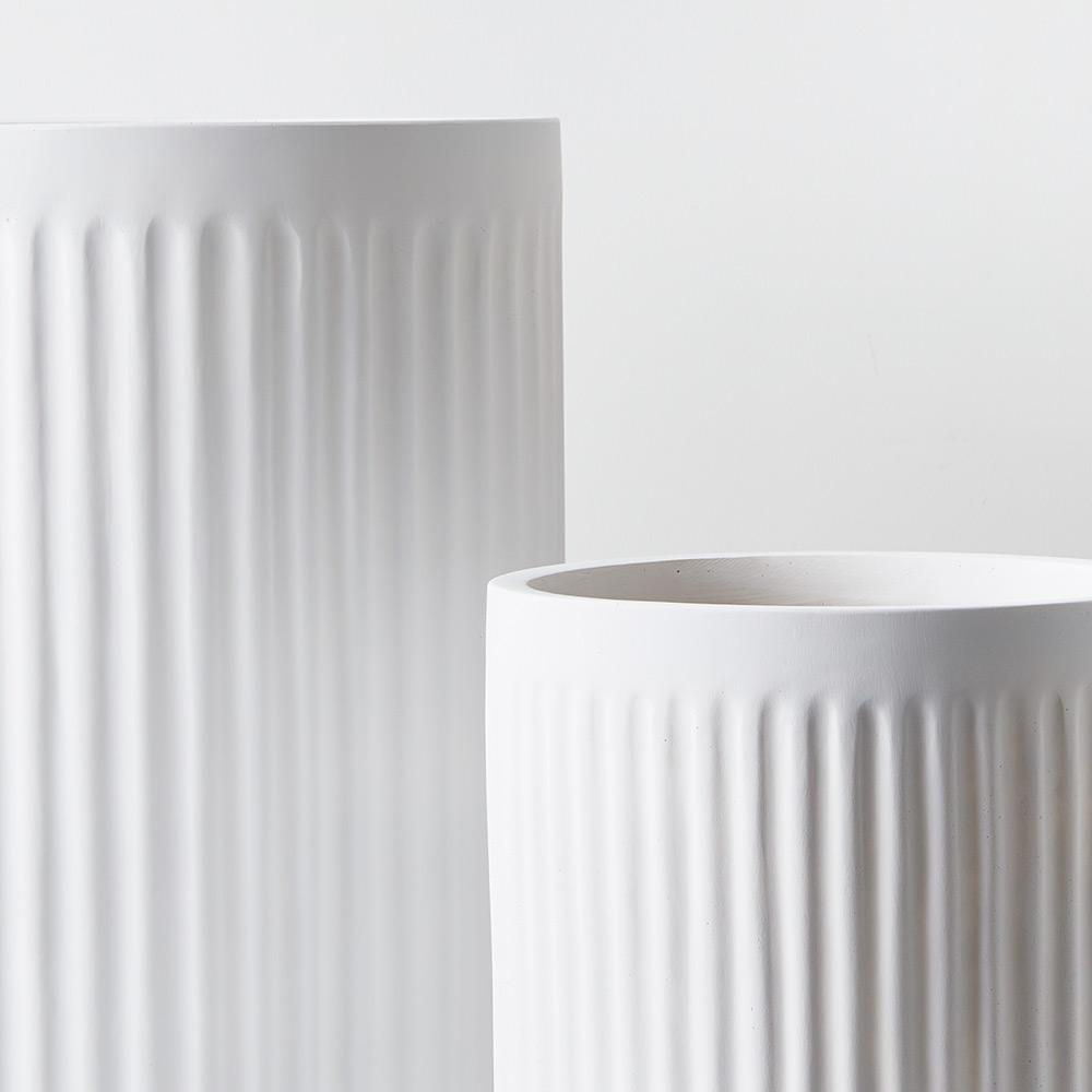 Our pot pleat cylinder tall (set of 2) in white are the perfect modern vessel to style your plants in any space. These pots are handmade from polystone, due to the nature of handmade items there may be slight variations in the size, surface texture or colour. Suitable for indoor or outdoor use they all come with a drainage hole.