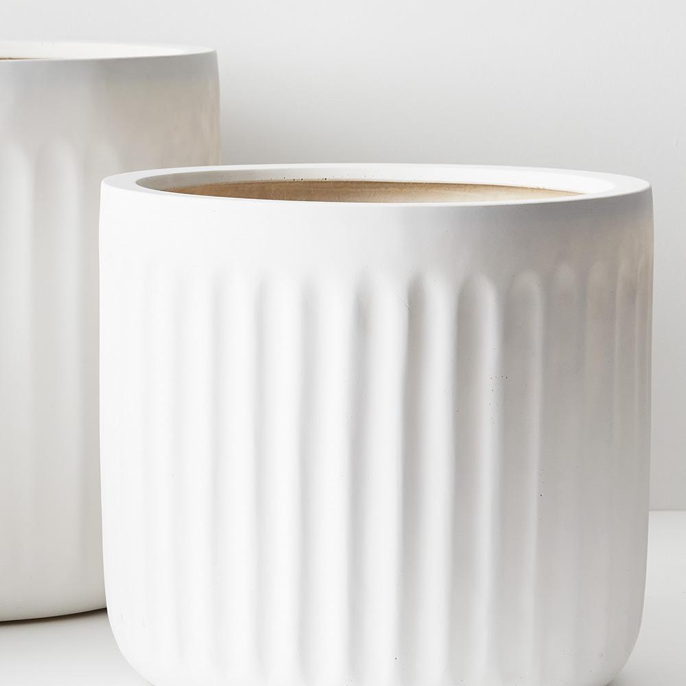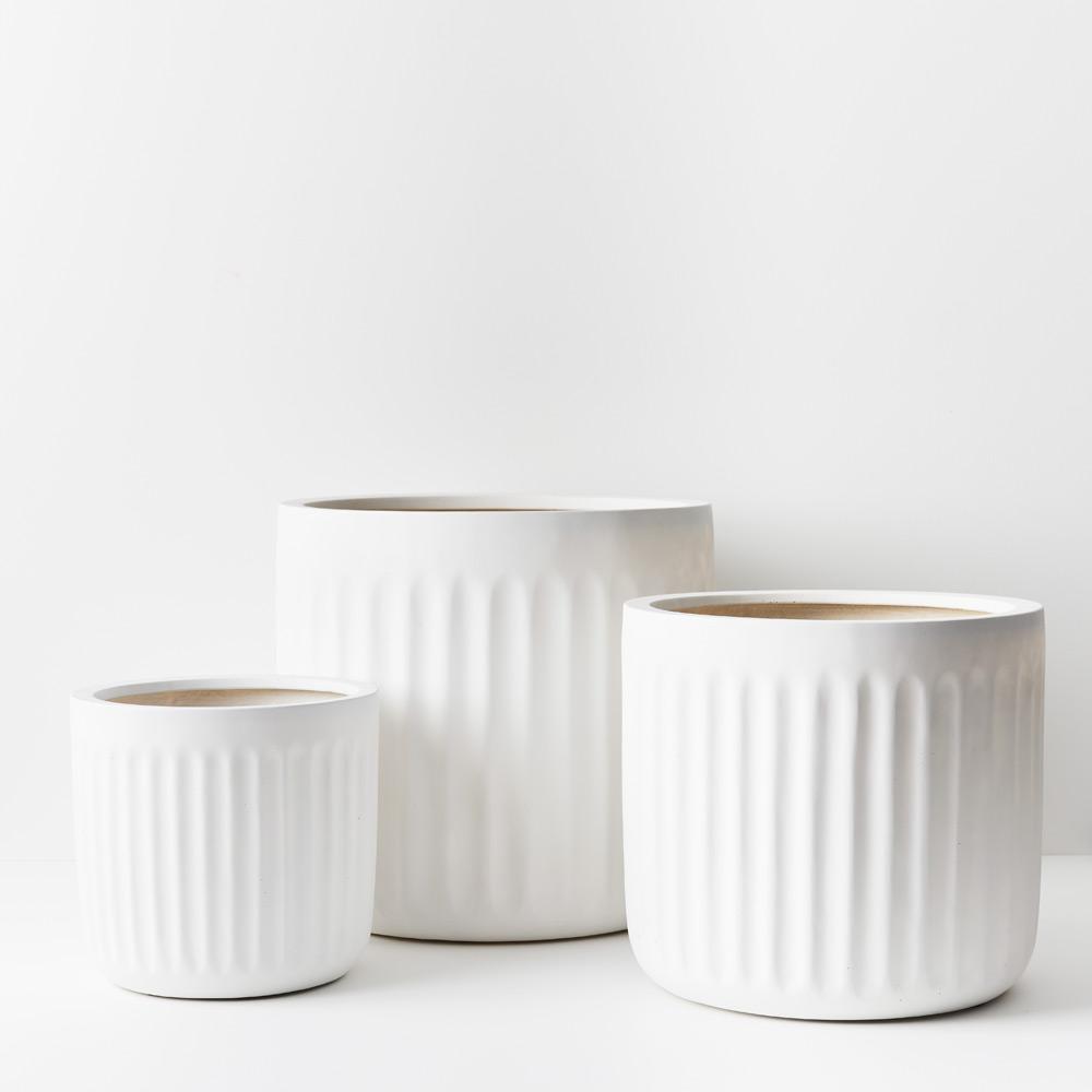 Our pot pleat round (set of 3) in white are the perfect modern vessel to style your plants in any space. These pots are handmade from polystone, due to the nature of handmade items there may be slight variations in the size, surface texture or colour. Suitable for indoor or outdoor use they all come with a drainage hole.