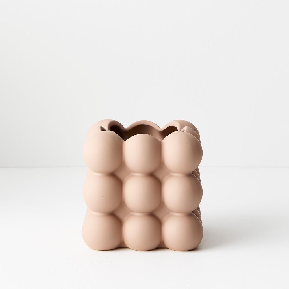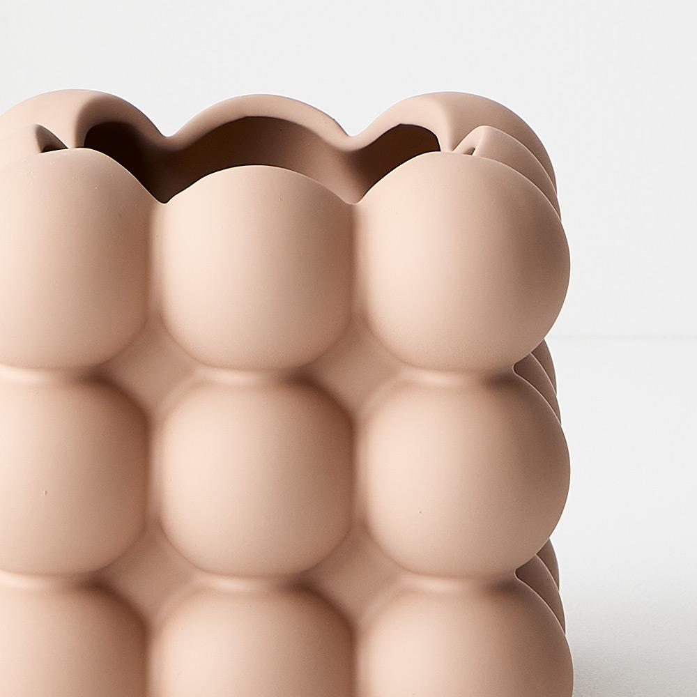 Our ceramic vase bubblo featuring a nude satin matte coating with a soft velvet feel is the perfect vessel to style your artificial stems in any space. Select from our extensive range of artificial stems to compliment. This ceramic vase is handmade, due to the nature of handmade items there may be slight variations in the size, surface texture, coating consistency, colour or tone of the vase.