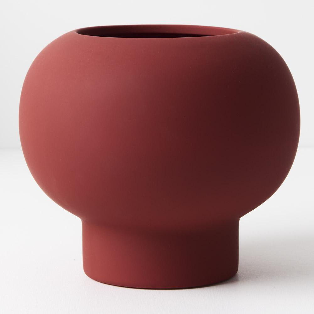 Our ceramic vase lucena featuring a red satin matte coating with a soft velvet feel is the perfect vessel to style your artificial stems in any space. Select from our extensive range of artificial stems to compliment. This ceramic vase is handmade, due to the nature of handmade items there may be slight variations in the size, surface texture, coating consistency, colour or tone of the vase.