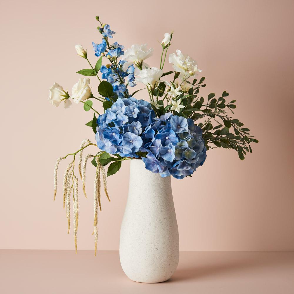Our Palina Vase in Ivory has a satin matte coating with a soft velvet feel and a high gloss white glaze inside. It’s not only eye-catching on its own, but pairs perfectly with our extensive range of artificial stems or branches to create vibrance in any home or office. This ceramic vase is handmade, due to the nature of handmade items there may be slight variations in the size, surface texture, glaze consistency, colour or tone of the vase.
