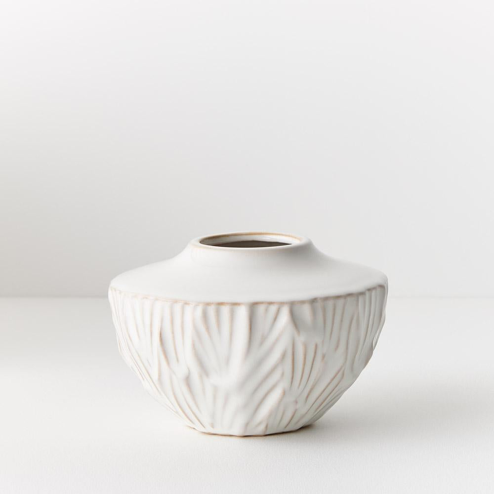 The Bryna Vase features a distinctive design with a curved base and a flatter top, complemented by a small opening. Standing at a modest 16cmh, it's perfect for minimalist arrangements or as a decorative accent, offering a touch of contemporary sophistication to any space.
