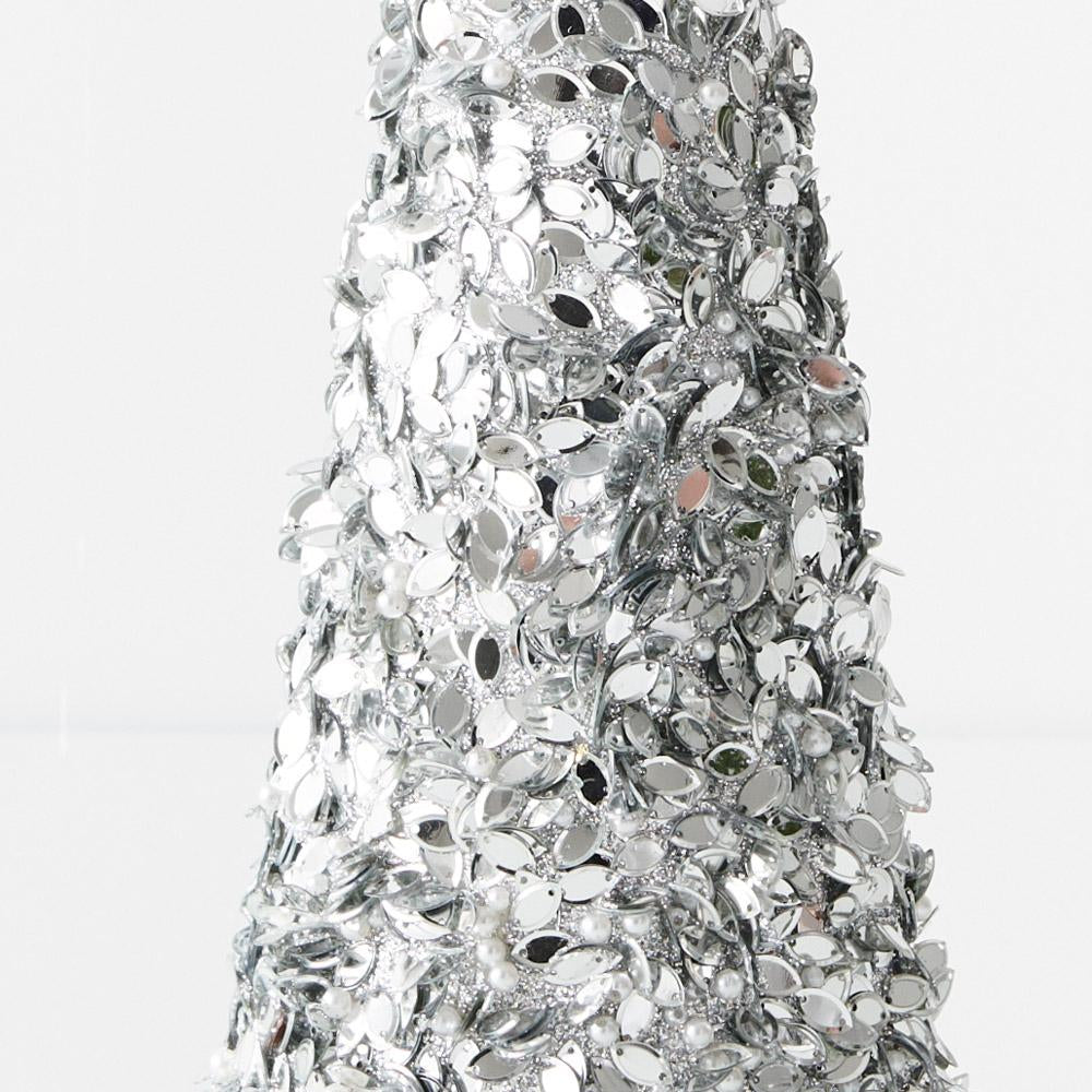 Behold the opulence of our 30cm silver Jeweled Cone Christmas Ornament, a dazzling fusion of sequins, beads, and crystals. This intricately adorned cone brings a cascade of festive glamour to your holiday decor, promising a touch of luxury and sparkle.