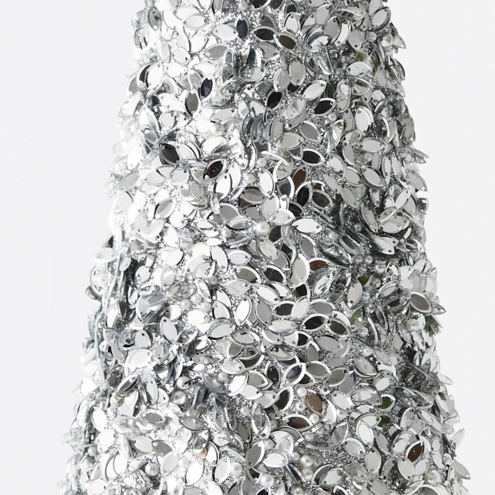 Behold the opulence of our 45cm silver Jeweled Cone Christmas Ornament, a dazzling fusion of sequins, beads, and crystals. This intricately adorned cone brings a cascade of festive glamour to your holiday decor, promising a touch of luxury and sparkle.